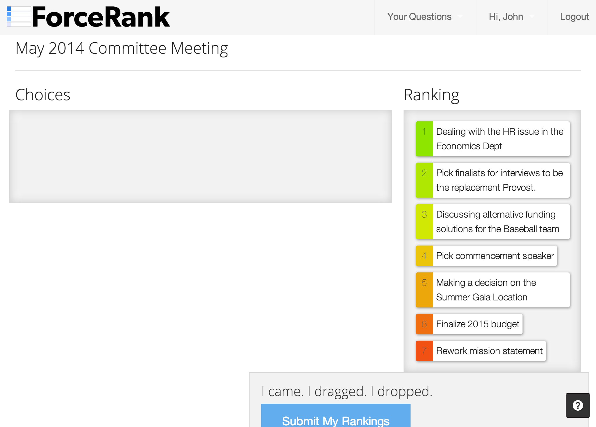 Will using a tool like this solve every issue with your meeting? No, it surely won't. But by focusing the meeting on a single issue and having this data to understand the landscape of opinions you'll have an opportunity to use the precious face-to-face time to deal with the real issues.