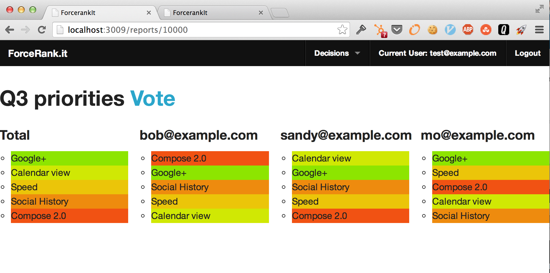 Work really only happening on weekends and still you can see that by day 12 we've got a functioning system. Real voting. Real rankings. I'd say that we'd spent about 30 hours so far.