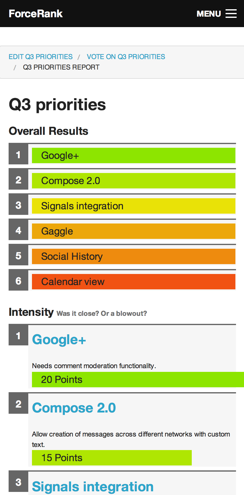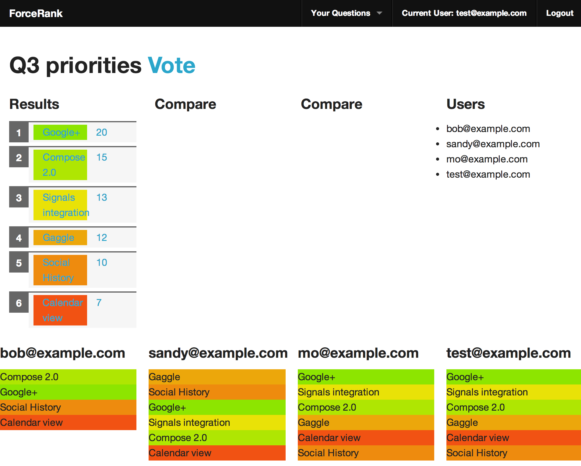 You can read more about how they liked it and what we did next in The Building of ForceRank.